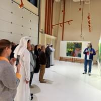 The exhibition features works by the artists:Abdulrahim Salem, DR. Najat Makki, Jassim Rabih, Thaier Helal, Muatasim Al Koubaisy, and Dr. Mehrez Ellouz.