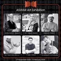 Visitors are invited to collect a complimentary exhibition catalogue, featuring artist interviews, highlights of their artworks, and detailed information about ASWAR Art Centre, its programs, and upcoming events.